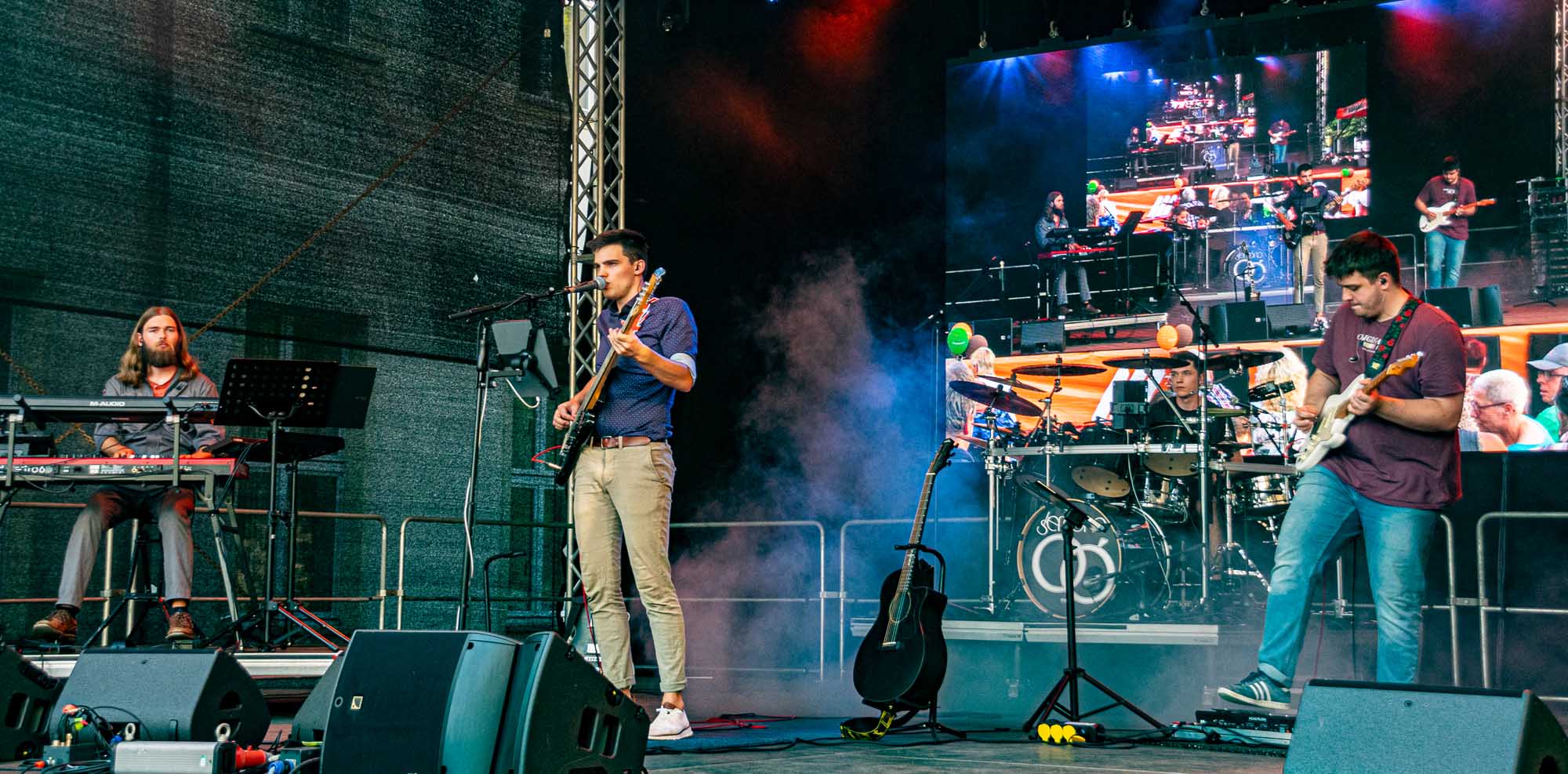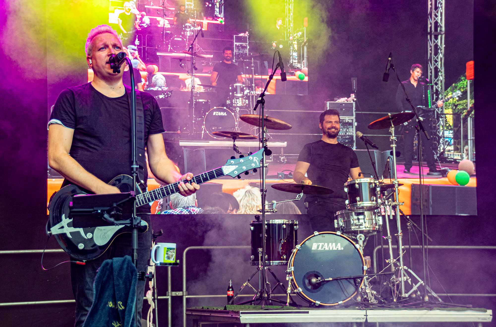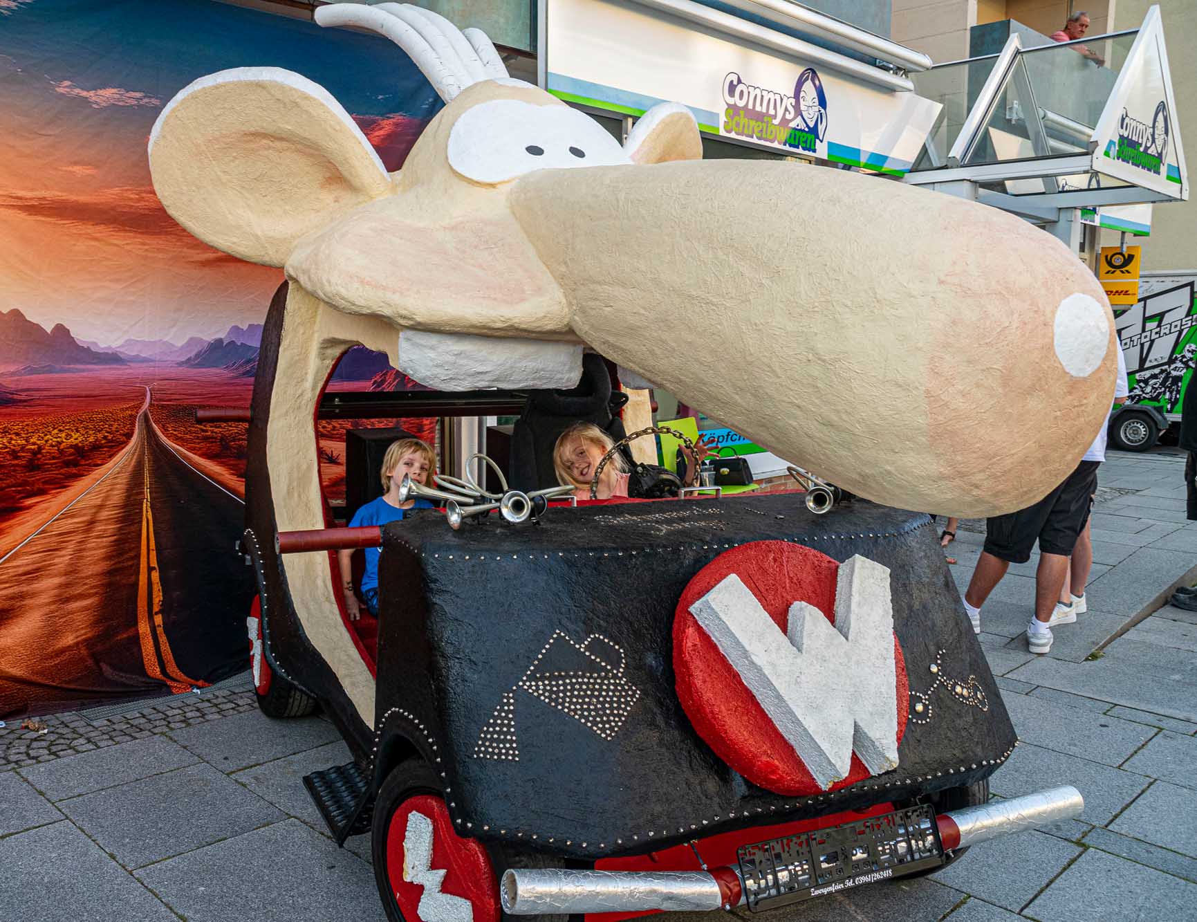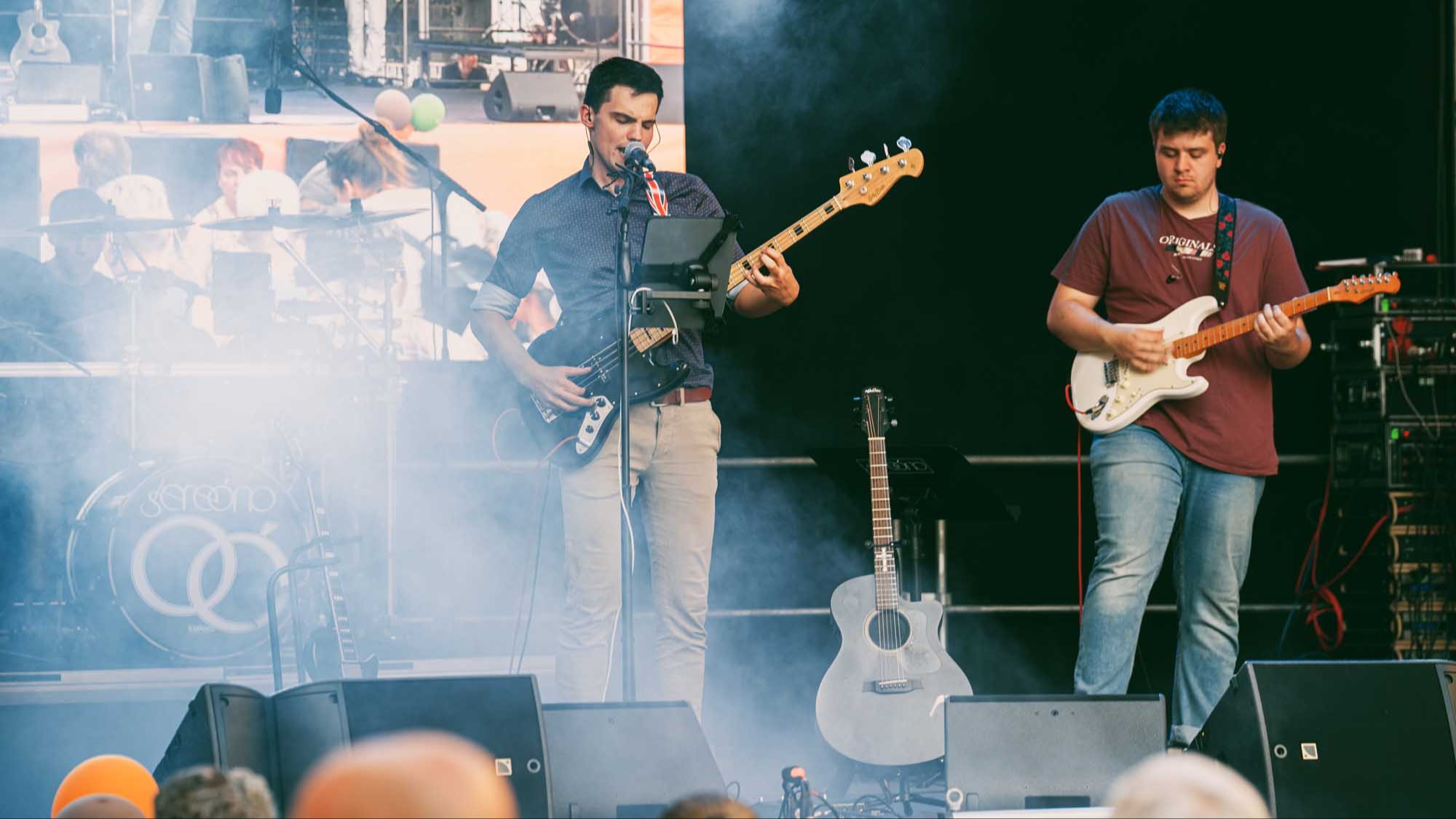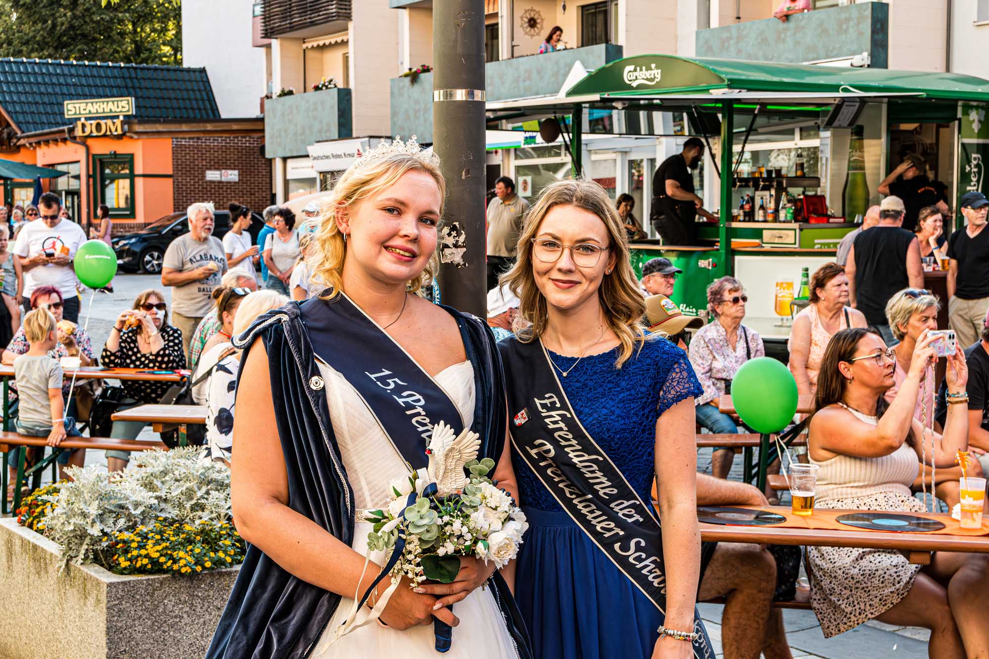 »Prenzlau macht sein Ding«, sang Udo Lindenberg Double EXE, der den musikalischen Auftakt mit beliebten Songs der deutschen Rock-Ikone machte. Während der Umbauzeiten sorgte die Berliner Frauengruppe »Brass Appeal« mit Blasinstrumenten für gute Laune. Anschließend begeisterte die Big Band Uckermark mit einem breiten Repertoire an bekannten Liedern, die Jung und Alt zum Mitwippen brachten. Besonders großen Anklang fand das Tanzstudio Swing, das zu rockigen Klängen eine energiegeladene Zumba-Performance zeigte. Wohnbau-Maskottchen Eddy und Friedrich ließen es sich nicht nehmen, sich ebenfalls tänzerisch zu versuchen und brachten die Prenzlauerinnen und Prenzlauer mit einer eigenen Choreografie zu »We Will Rock You« zum Jubeln. Auch die Nachwuchsband Stereono aus Rostock, um den Prenzlauer Gian Luca Urland, war Teil des Programms. Die Band beeindruckte mit ihrem musikalischen Können. Für gute Stimmung sorgten »Die Kassenpatienten« aus Leipzig, die mit bekannten Liedern der »Ärzte« und einer großen Portion Humor das Publikum begeisterten. Die BMX-Show »Friss Dreck«, die mitten in der Friedrichstraße stattfand, ließ vor allem die Herzen der jungen Zuschauerinnen höherschlagen. Die Jungs zeigten spektakuläre Sprünge und brachten die Menge zum Staunen. Als krönender Abschluss des Abends rockte Prenzlaus Lieblingsband F.altenrock die Bühne. Es wurde getanzt, mitgesungen und ausgelassen gefeiert.