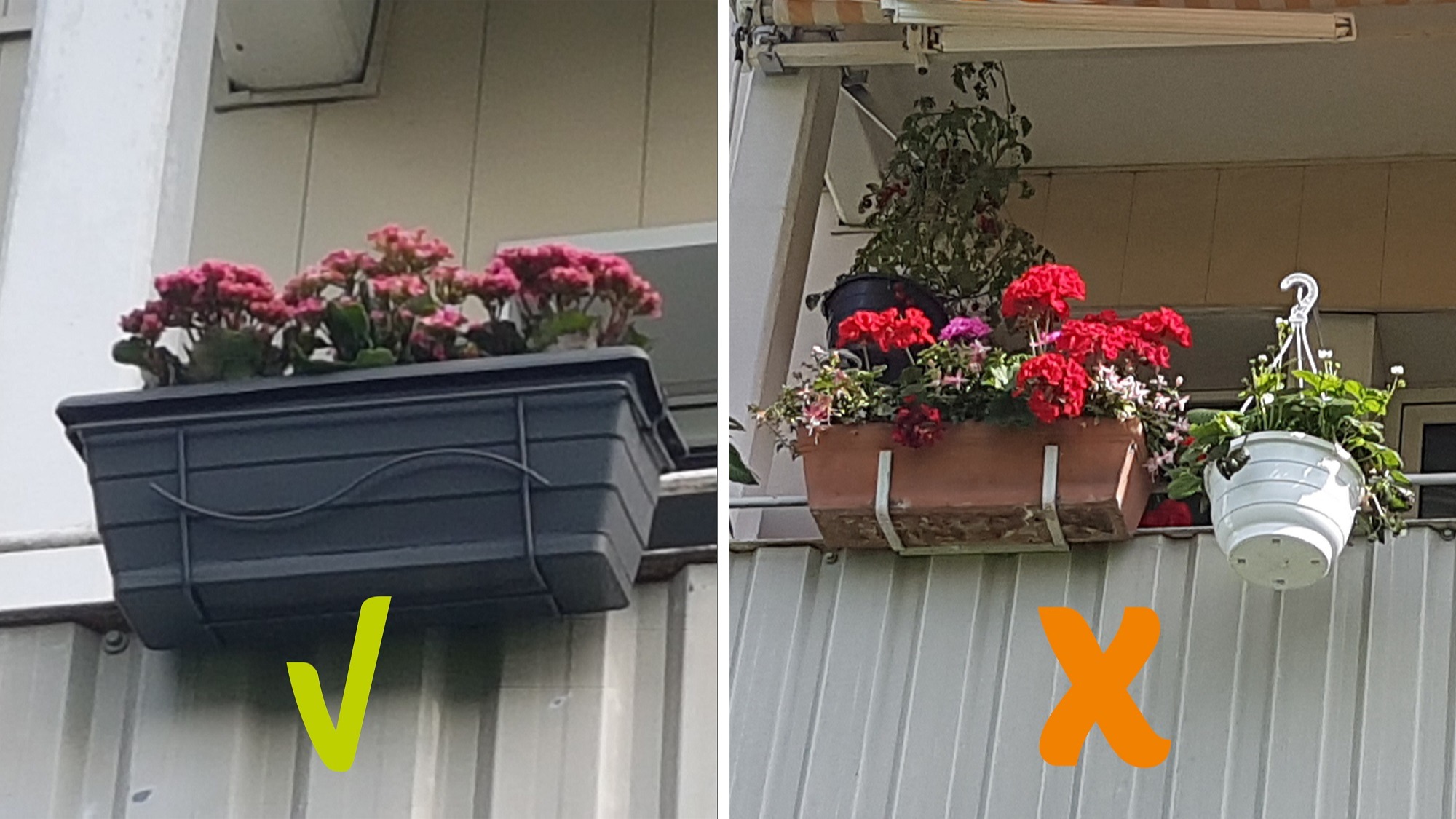 Damit Passanten oder Fahrzeuge nicht durch herabfallende Blumenkästen oder -töpfe gefährdet oder geschädigt werden gilt: