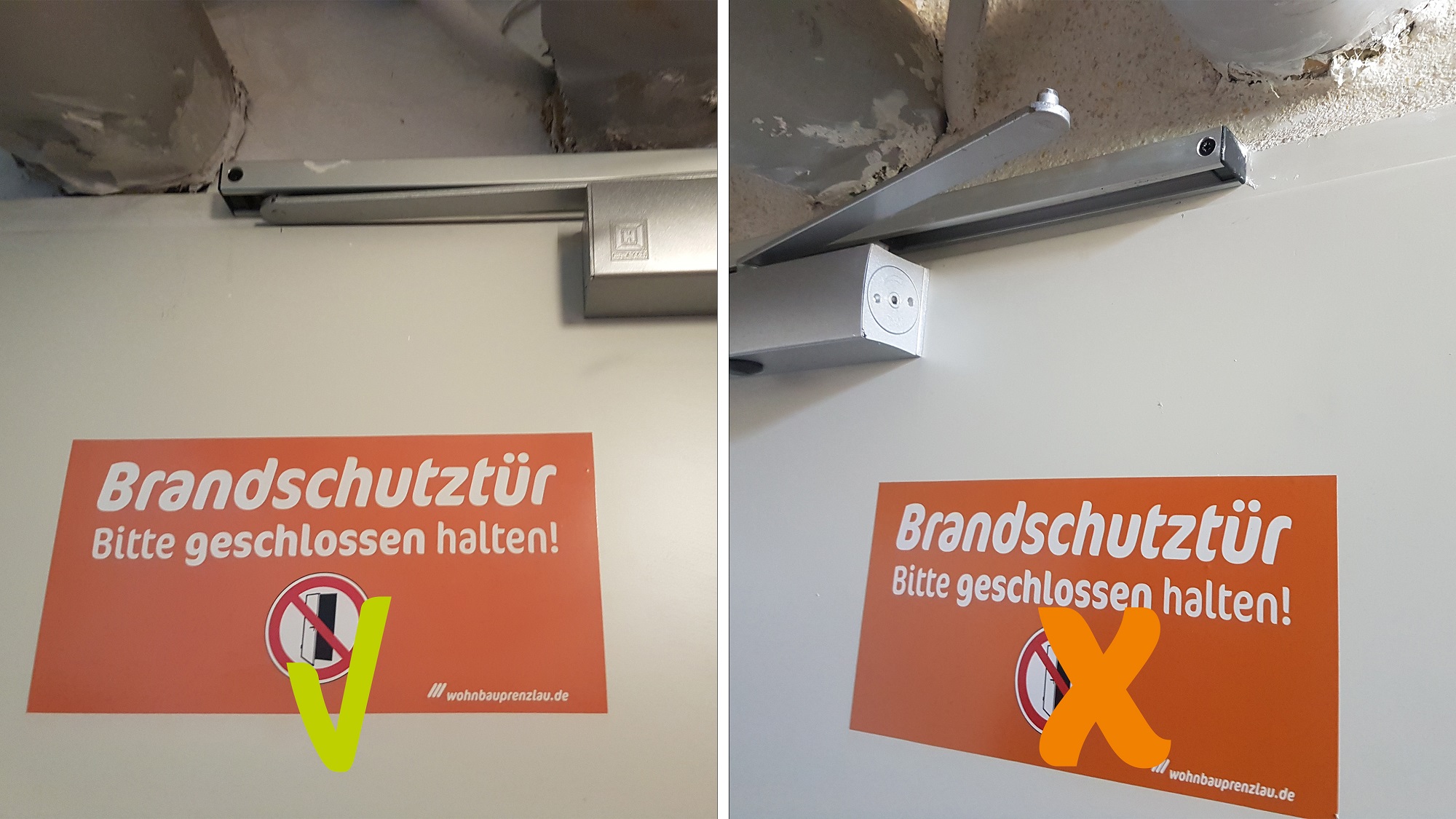 - Brandschutztüren sind stets geschlossen zu halten. (Andernfalls erfüllen sie im Fall eines Brandes nicht ihre Funktion).