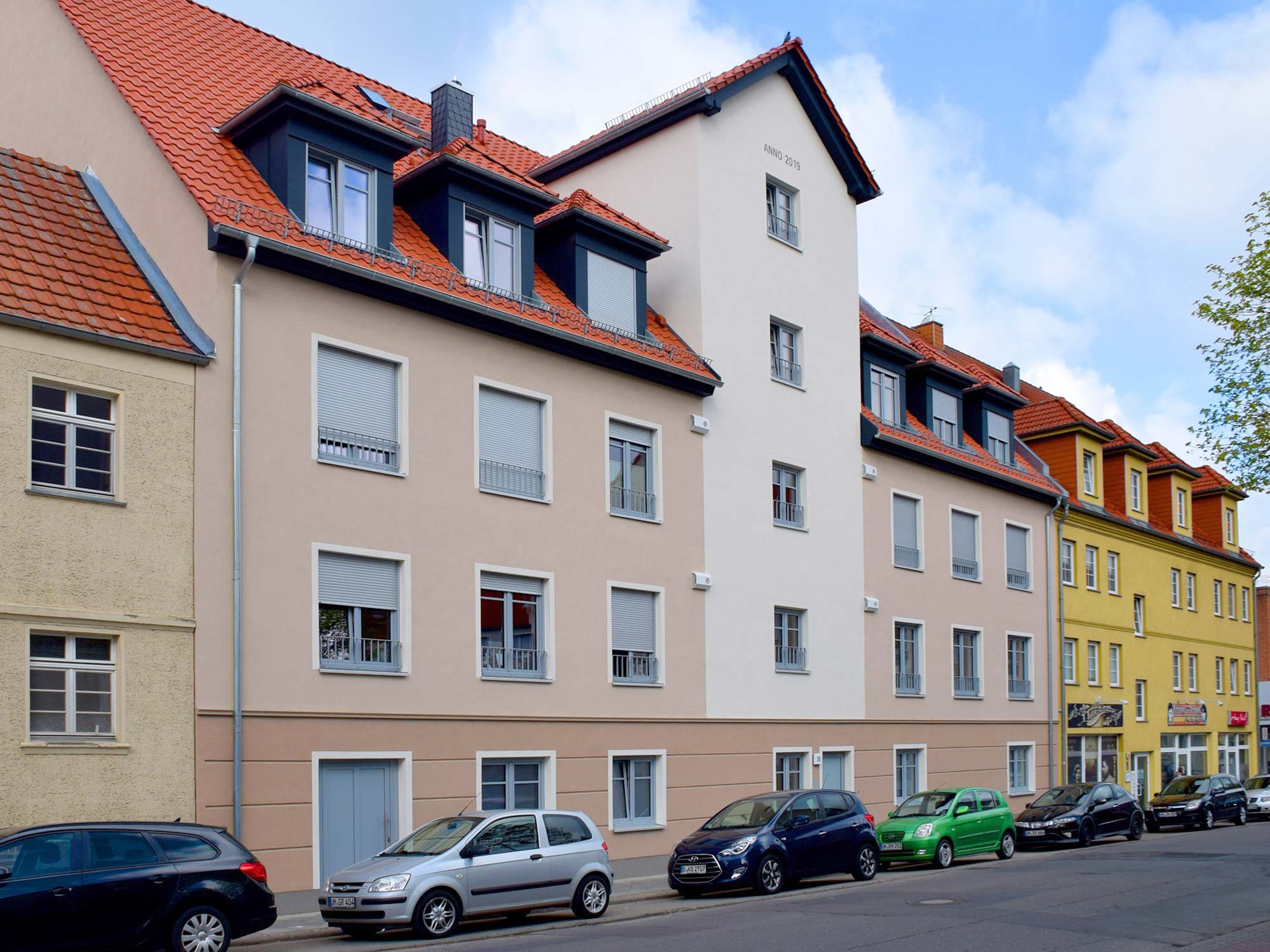 Im April 2020 wurde das Neubauprojekt in der Steinstraße 26 fertiggestellt. Das Wohnhaus schließt eine Baulücke vor der Alten Nikolaikirche. Im Viergeschosser entstanden 11 barrierearme Wohnungen mitten in der Stadt.