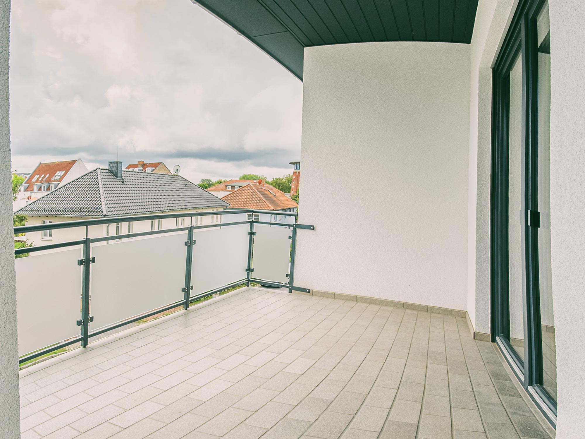 Die Grundrisse der oberen Etagen sind praktisch angelegt. Alle Zimmer sind vom Flur aus begehbar, sogenannte Durchgangszimmer gibt es nicht. Küche und Bad sind mit Fenstern ausgestattet und gefliest. Eine Fußbodenheizung und elektrische Rollläden sorgen für ein besonderes Wohlbefinden. Im Badezimmer sind Dusche und Badewanne vorhanden. Angrenzend kann der etwa 8 m² große Balkon zur wahren Wohlfühloase werden. Die Wohnzimmer sind mit etwa 20 m² und die beiden Schlafzimmer mit 12 und 14 m² sehr geräumig. Zusätzlich gibt es einen Abstellraum.
