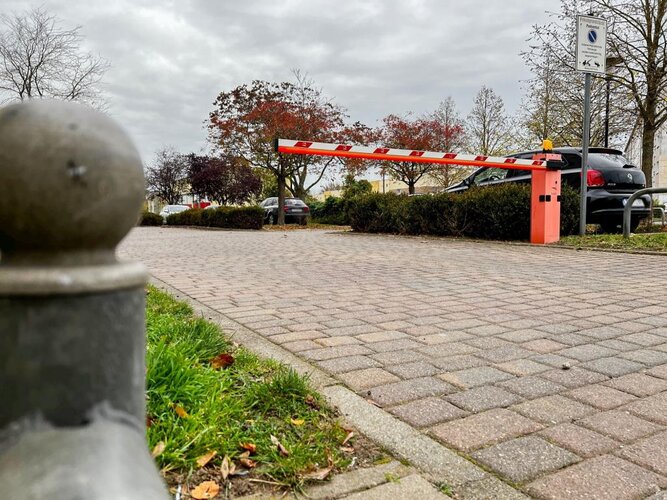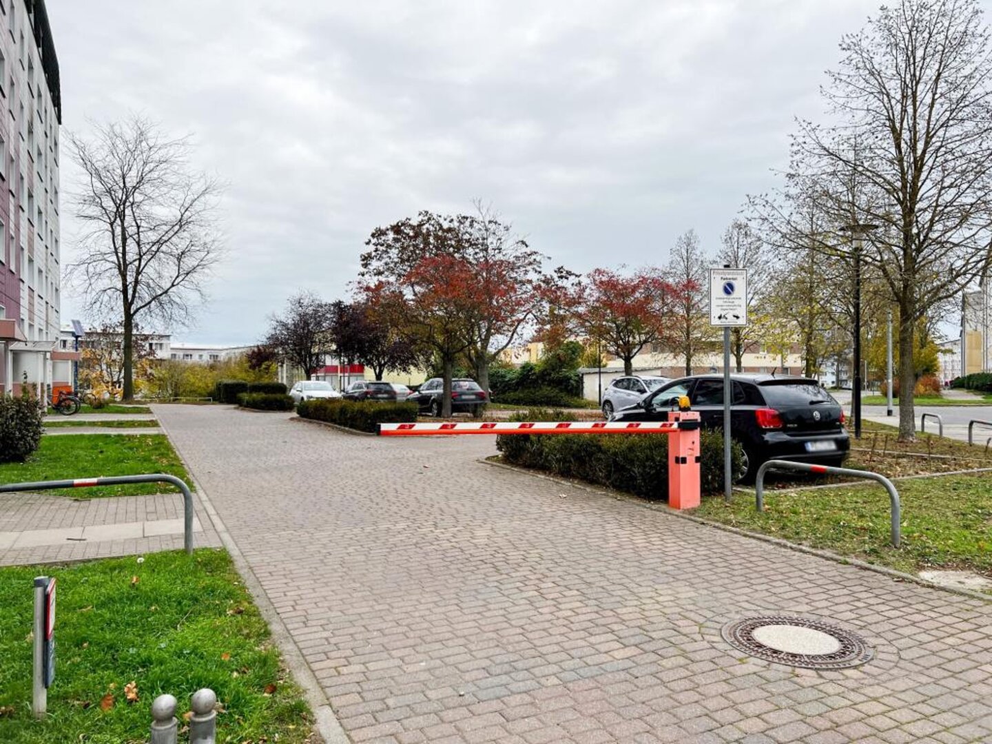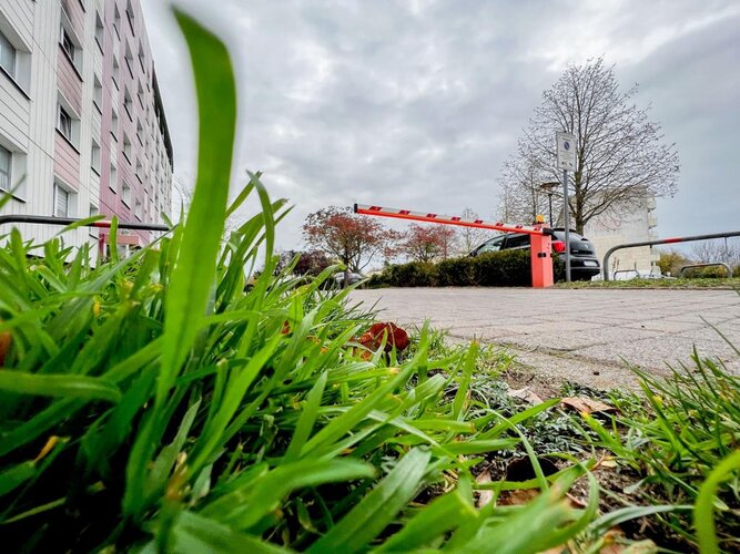 Der Stellplatz befindet sich vor dem Haus Georg-Dreke-Ring 1-7 und ist durch eine Schranke vor Fremdparkern gesichert.